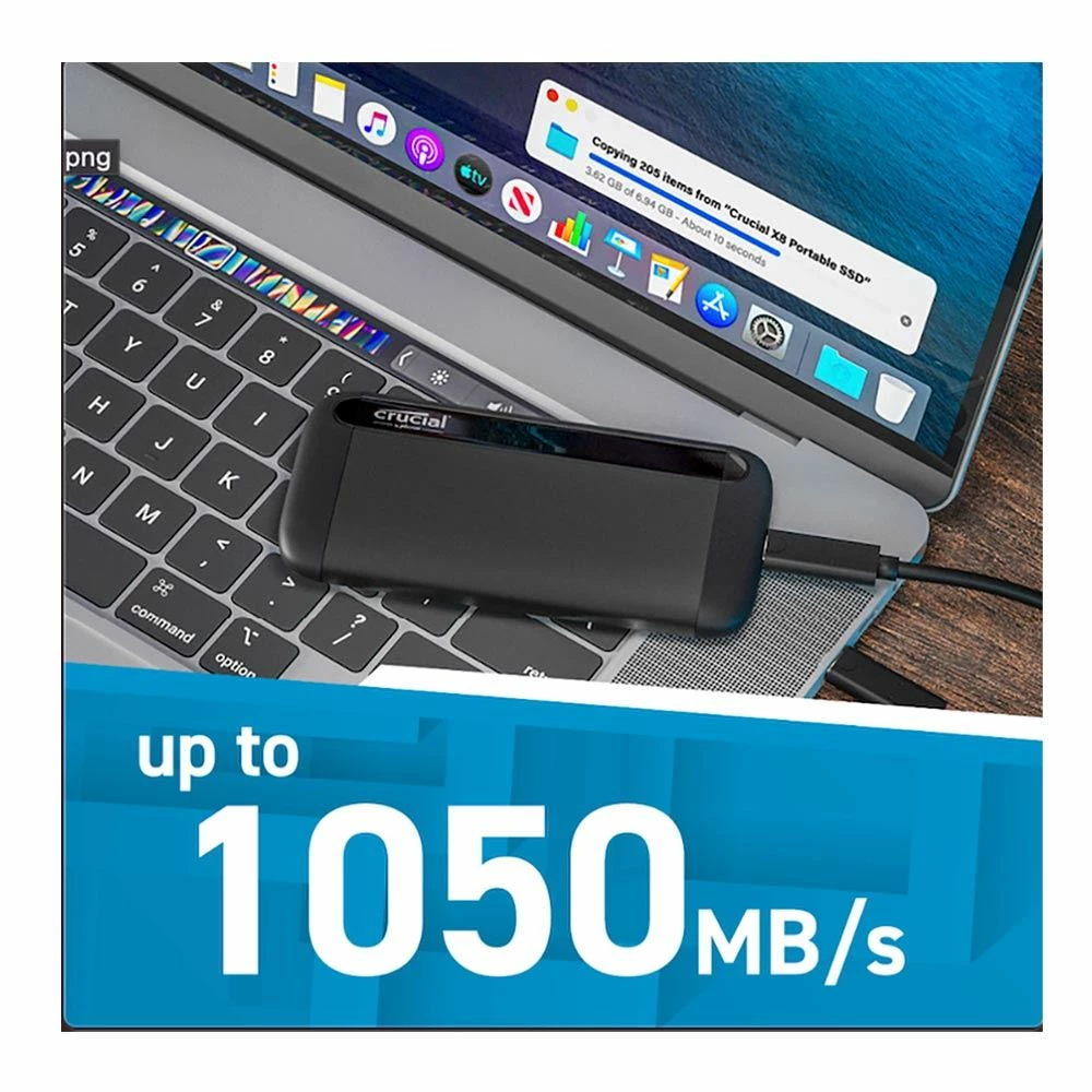 Protect your memories with the Crucial X8 Portable SSD back up important photos, videos, and documents with up to 4TB capacity. Expand storage on your PS4, Xbox One, iPad Pro, Android device, or simply free up space on your computer quickly with speeds up to 1050 MB/s. The Crucial X8 runs up to 1.8x faster than other portable SSDs and up to 7.5x faster than portable HDDs. Store with confidence on the Crucial X8.