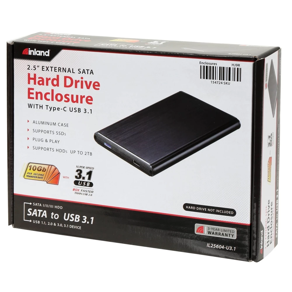 Inland 2.5″ Aluminum Hard Drive Enclosure With USB 3.1 Type C