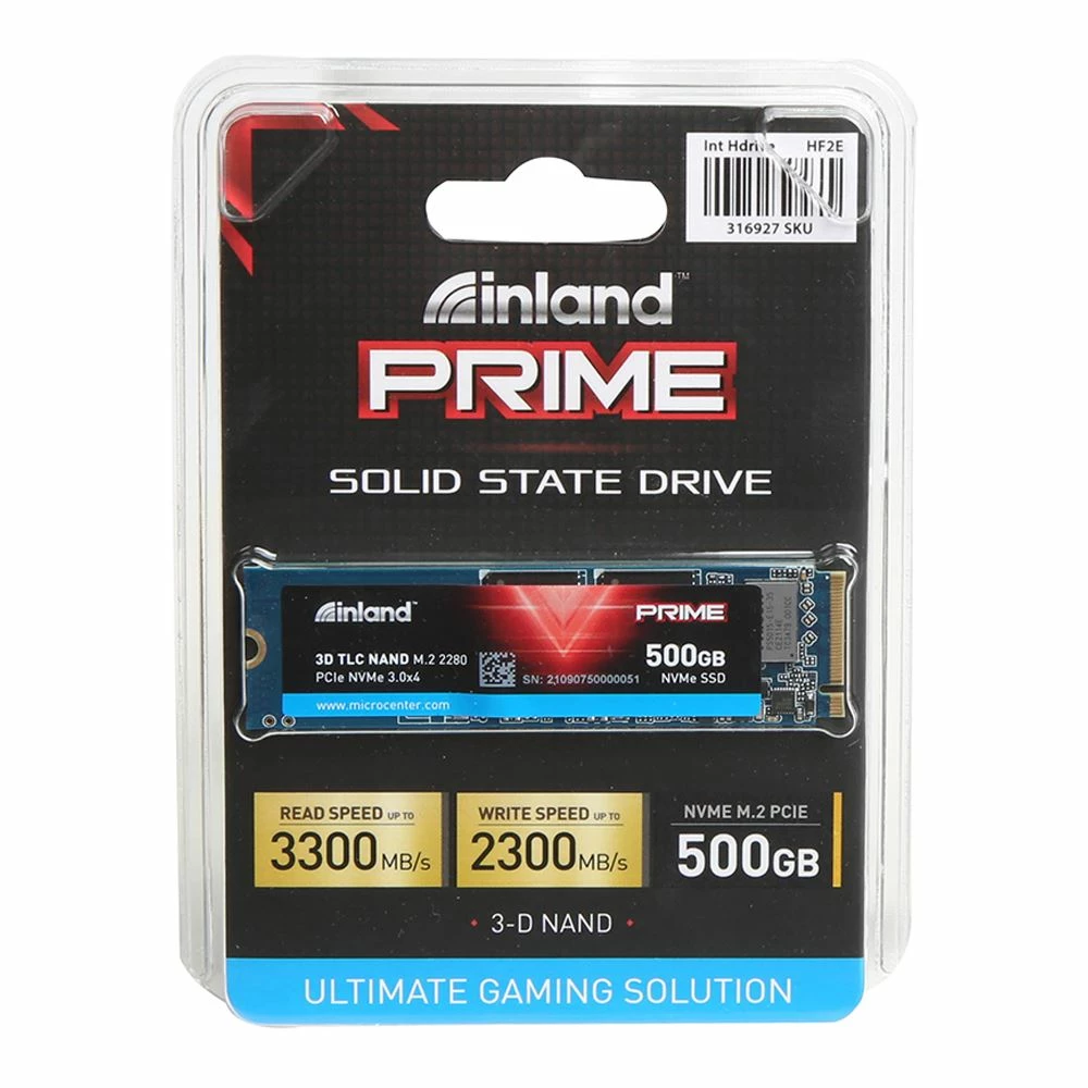 Inland Prime 500GB SSD NVMe PCIe Gen 3.0×4 M.2 2280 3D NAND Internal Solid State Drive Read/Write Speed Up To 3,300 MBps And 2,300 MBps; PCIe Express 3.1 And NVMe 1.3 Compatible; Ultimate Gaming Solution
