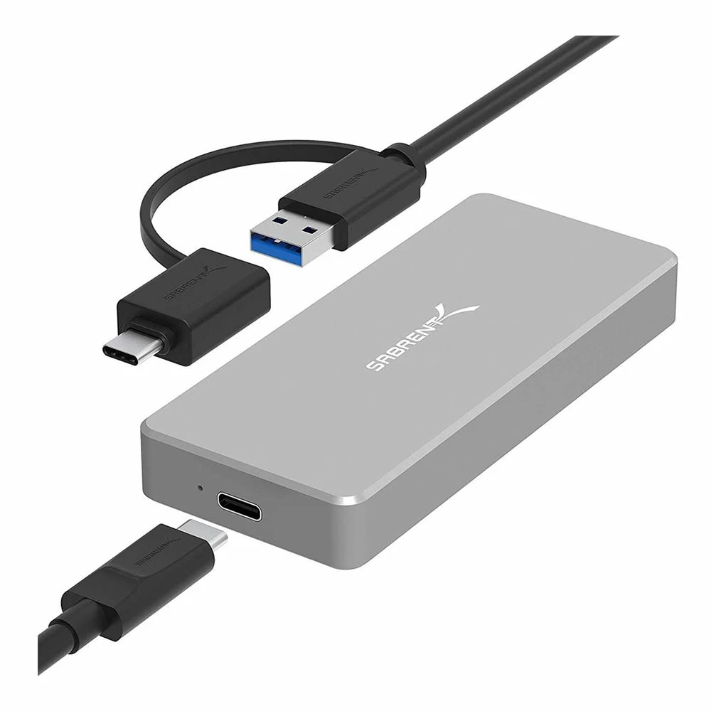 The Sabrent EC-NVME enclosure allows you to transform your NVMe drive into a super, fast ultra, portable pocket drive, this will enable you to copy and transfer data in no time.Compatible with most 80mm 2280, 60mm 2260, and 42mm 2242 M.2 form factors, such as Samsung 950 Pro, Pm951, Pm981, SM961, 960 EVO, 960 Pro, 970 EVO, 970 Pro, WD Black, a data XPG, Corsair Force, Intel 600P, 760P and 900P, Toshiba OCZ RC100, Patriot, SK Hynix, Kingston, Mushkin pilot, Drevo D1 extreme and more.Supports Windows and Mac OS, complies with trim, UASP, and upgradeable firmware.Ultra, fast 10Gbps throughput, low latency, and power efficiency. At up to 1000MB s. OS independent, and fully bus-powered, Plug and Play, No drivers required.The Sabrent NVMe enclosure can be used for a variety of tasks including data transfer, high, speed storage, data backup, cloning existing drives, running a mobile operating system, and more.Works with Windows. Great with Mac.USB Type C, USB, A Compatible Designed to work with both Windows and Mac, this Enclosure is equipped with a USB 3.1 Type C connector, as well as a USB Type C to Type-A cable and a Type A to Type C adapter, basically, everything you need to transfer data between almost any computer.Built to protect your dataThis unique aluminum housing with a high, efficiency thermal pad is designed to absorb the heat from the NVMe drive to protect it from overheating, ensuring a long life expectancy from your drive.Never slow down With the USB 3.1 Gen 2 interface, this Enclosure provides transfer speeds of up to 1000MB s, thats 9x faster than traditional external HDDs. Transfer and backup large, sized data files and 4K videos within seconds.