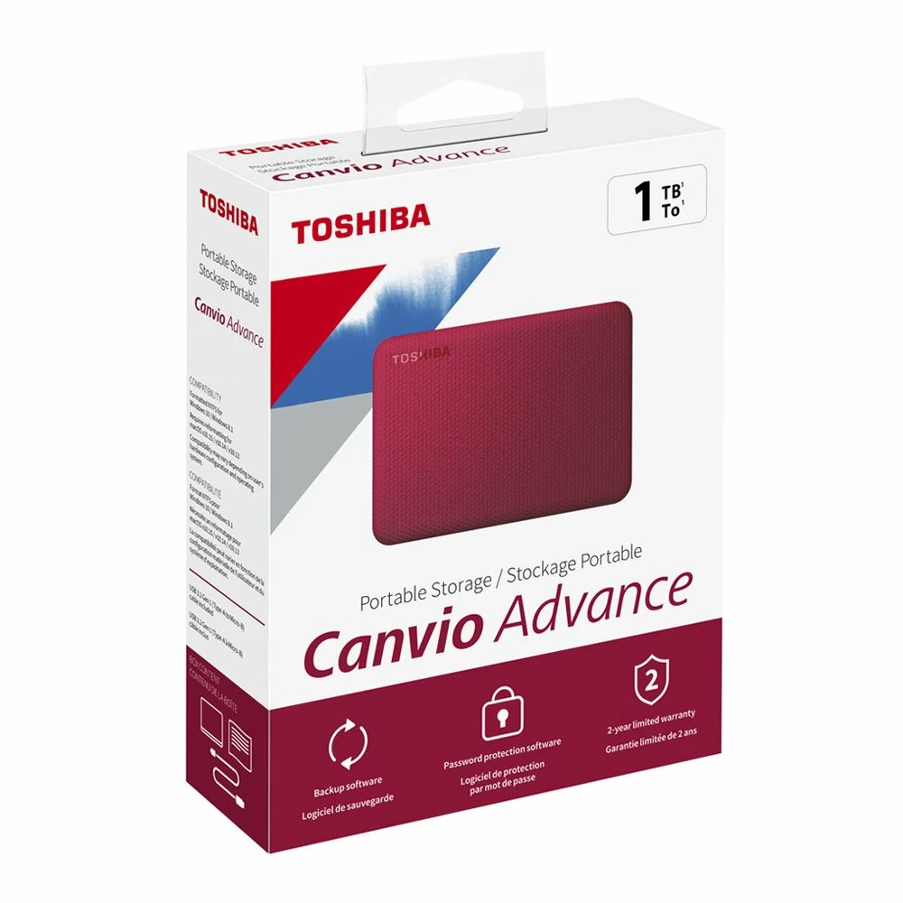 Toshiba Canvio Advance 1TB USB 3.1 (Gen 1 Type-A) 2.5″ Portable External Hard Drive – Red