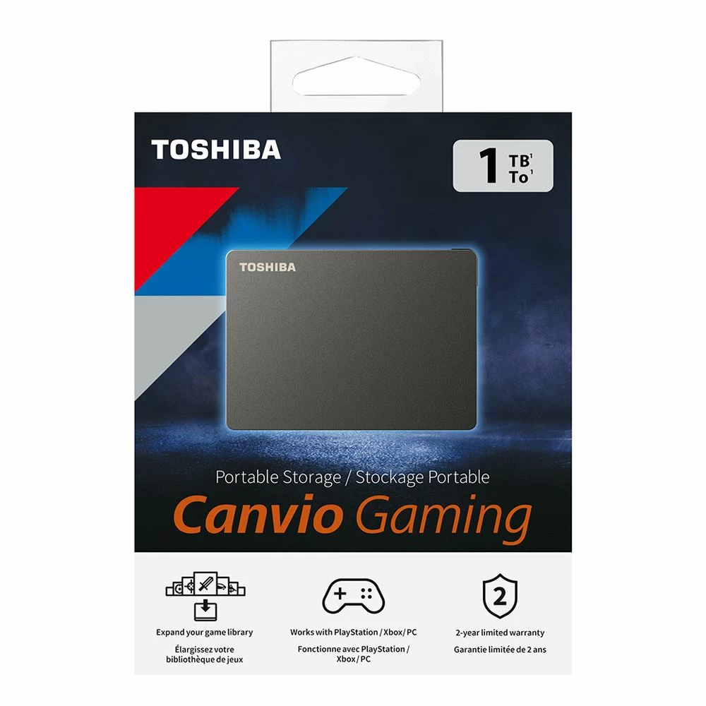 More game time means more victories. With the Canvio Gaming portable external hard drive, you wont have to worry about deleting games to make room for the hottest new release. The sleek, compact design allows you to hold up to 100 games5in an easy-to-carry, light weight casing. With up to 4TB1 of storage capacity for your data, your gaming library has room to grow. Canvio Gaming is compatible with Xbox, PlayStation, and PC gaming systems, giving you the freedom to play with ease on your console of choice4. This portable hard drive features a firmware-customized Always-On mode that is ready to respond to your next gameplay, so you can spend more time winning. Powered by USB 3.0 technology, the Canvio Gaming portable external hard drive helps you to easily access your game files and keep your gameplay going. Plus, it is backed by Toshibas 2-year limited warranty2, from a leading global provider of console gaming storage, giving you the confidence to expand your gaming library. This isnt just a game. Its a conquest. The Canvio Gaming Portable external Hard Drive is designed to support you when you cant afford to fall behind.