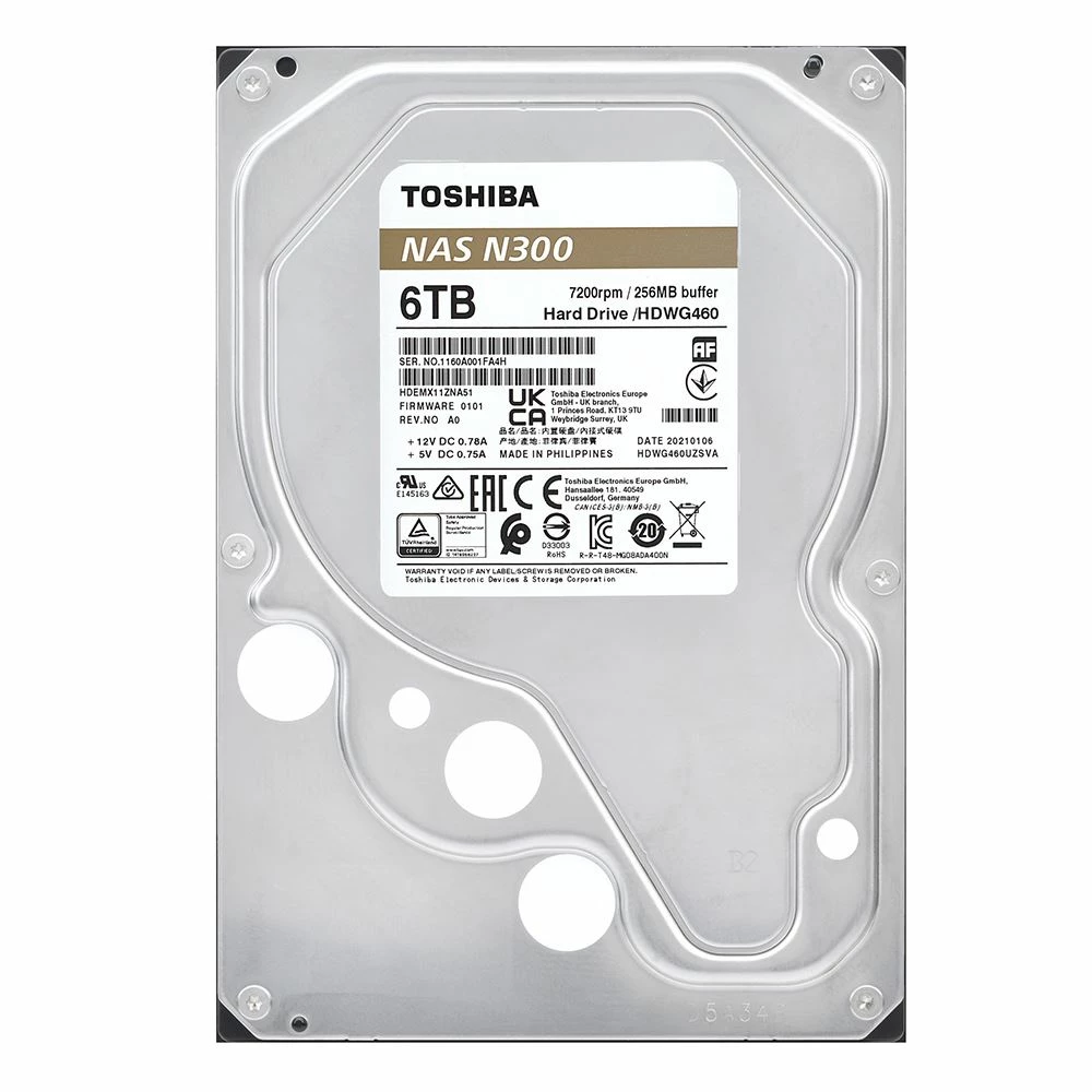 Toshiba N300 6TB 7200RPM SATA III 6Gb/s 3.5″ Internal NAS CMR Hard Drive