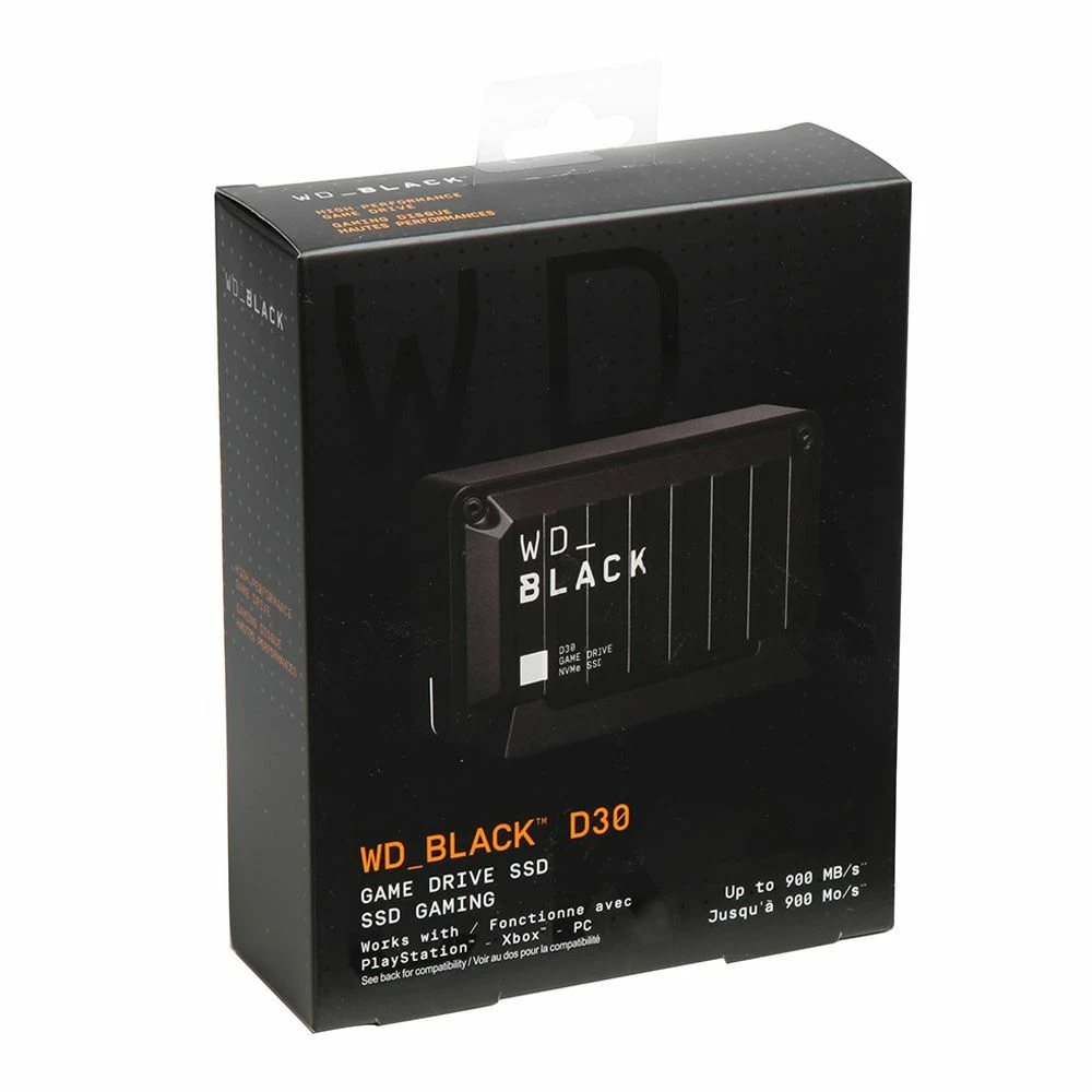 Shatter load screens and increase your capacity with the WD_BLACK D30 Game Drive SSD. Spend more time playing your games and less time deleting them with up to 2TB storage. Get in the game fast with optimized speeds up to 900MB/s. Compatible and ready to connect with your PlayStation or Xbox console (see compatibility below) in style with this sleek SSD, designed to perfectly complement your war machine.