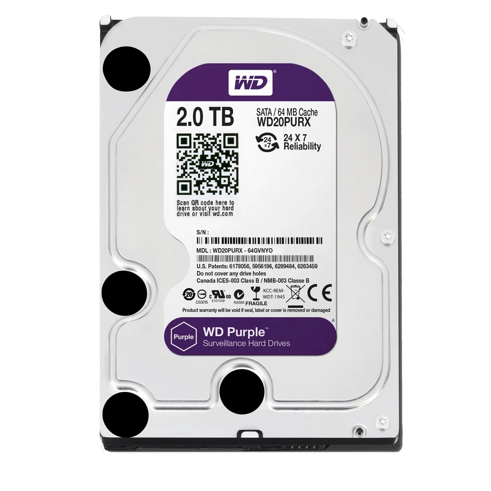 WD Purple Surveillance 2TB 5400RPM SATA III 6Gb/s 3.5″ Internal CMR Hard Drive